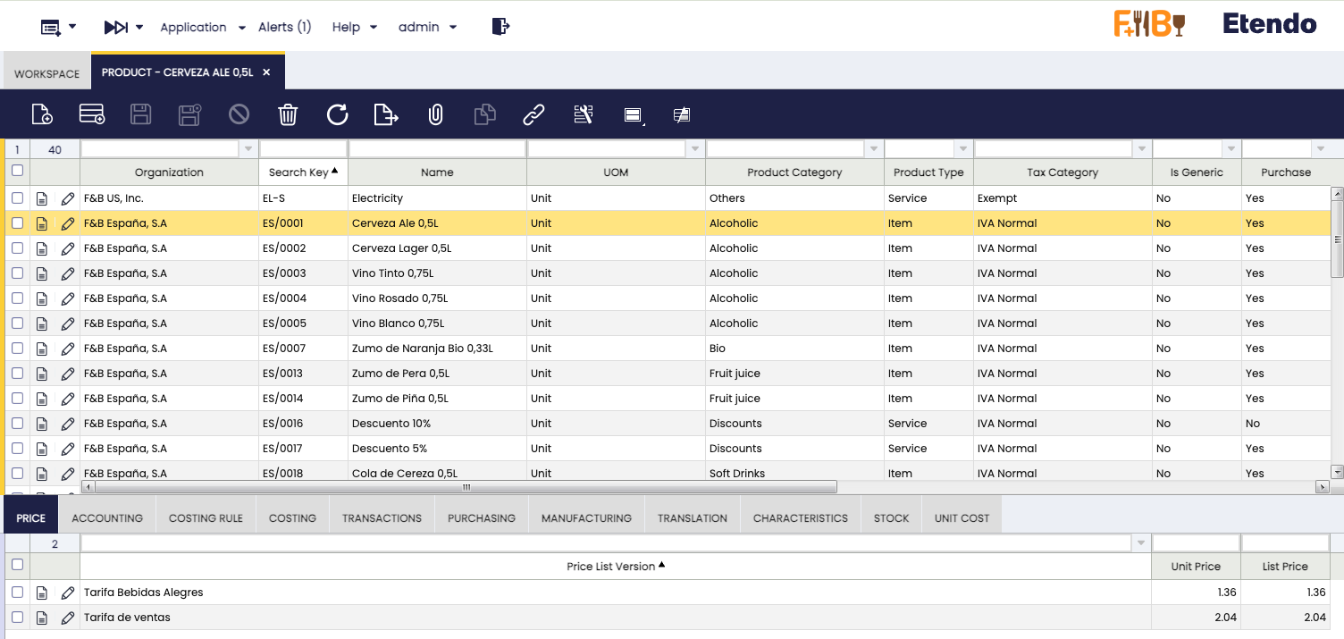 - a tab set with tabs , each Smartclient tab represents an Etendo child tab
