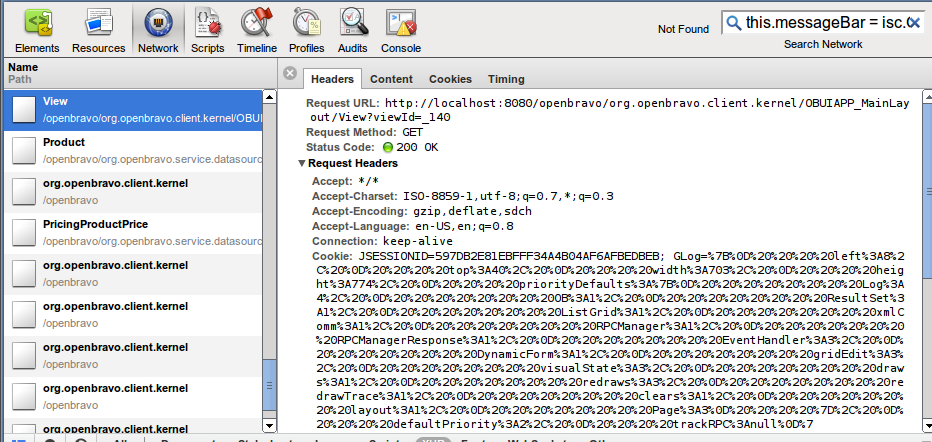 To do some debugging, enter this string this.messageBar = isc.OBMessageBar.create({ as a search string in the search field in the top.