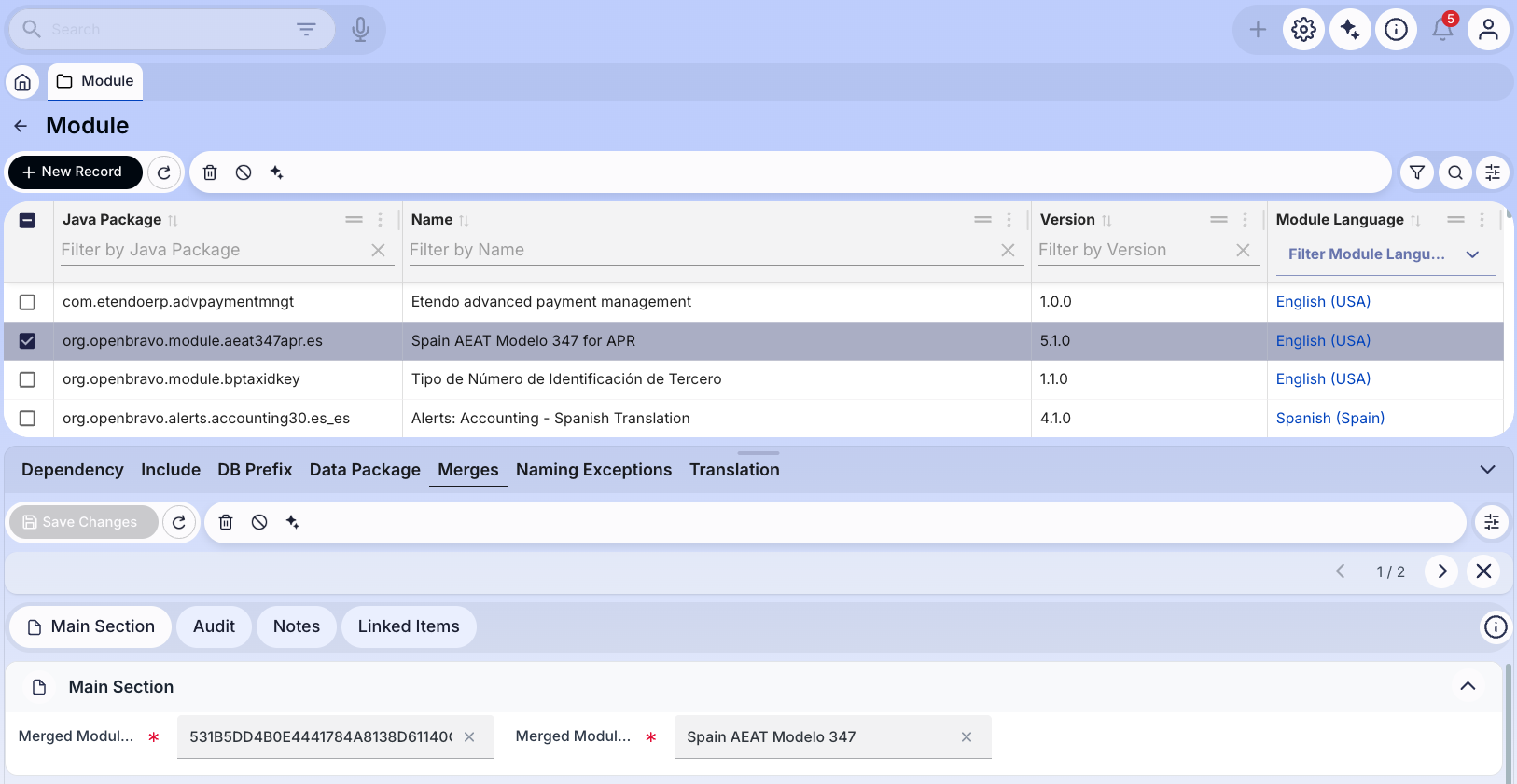 This work is a derivative of Merging Modules by Openbravo Wiki, used under CC BY-SA 2.5 ES. This work is licensed under CC BY-SA 2.5 by Etendo.