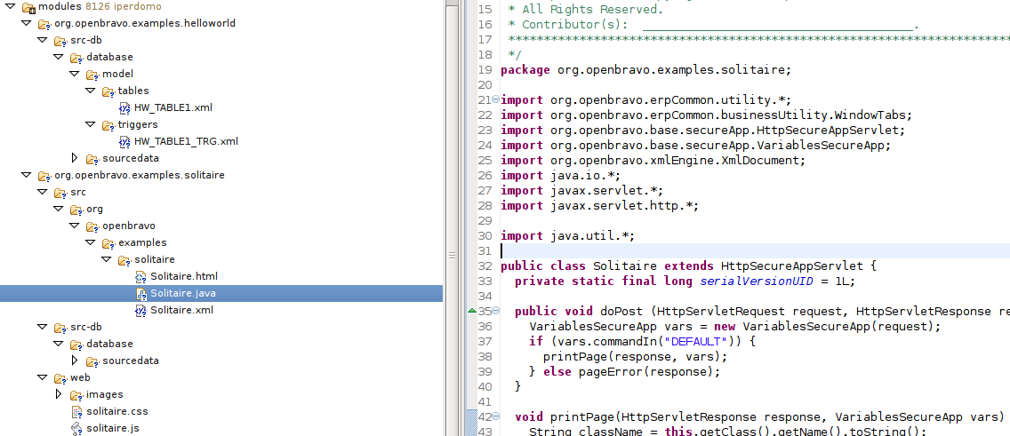 All the content of a module -code, utility files, data- is contained in a separate folder for each module. All the content in that folder is related to and only related to that module. There is a folder within the main Etendo folder called modules where all the modules that you have installed or developed are located. For each module there is a folder identified by the java package of the module. In that folder the source code structure of Etendo (config, src, src-db, lib, etc.) is replicated as required to store the content of the module.