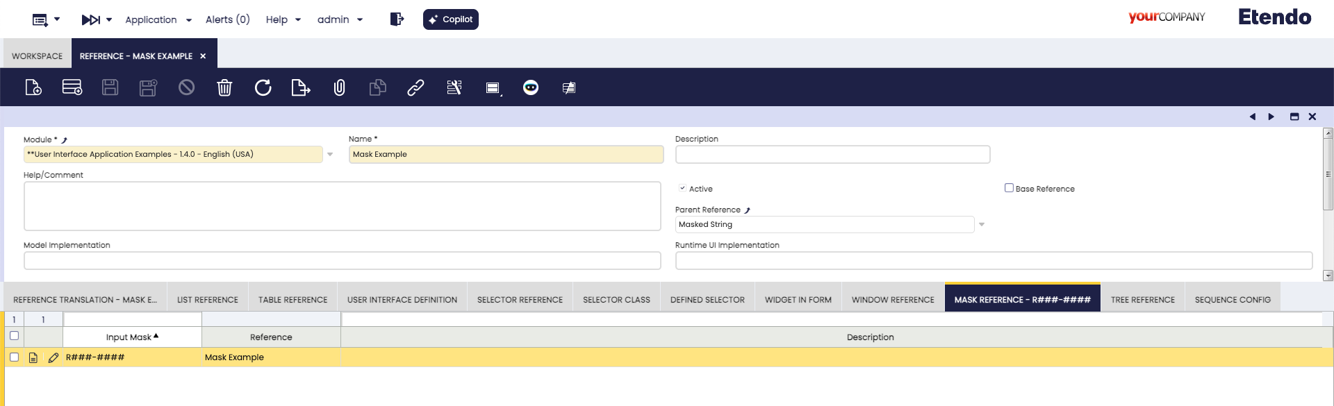 This section explains how to add a masked text field and column to the Etendo system. A masked text can be used to force the user in entering text/string values in the correct format.