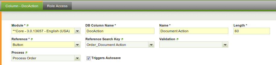 - Create a window, tab and field for the column.