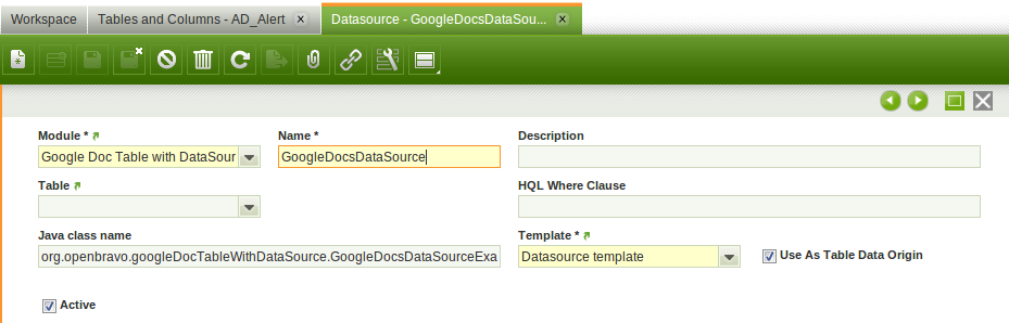 This work is a derivative of How to Create a Table based on a User Defined Datasource by Openbravo Wiki, used under CC BY-SA 2.5 ES. This work is licensed under CC BY-SA 2.5 by Etendo.