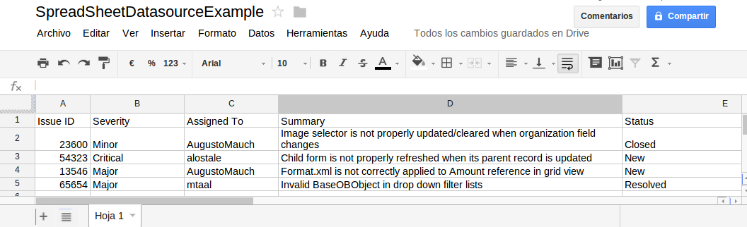 This section is a summary of a datasource based table that uses a Google Spreadsheet as its data origin.