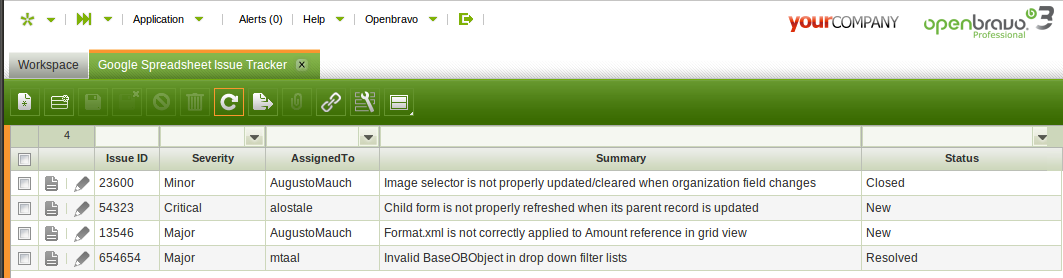 When a record is updated from the Etendo window, the google spreadsheet is updated in real time. If the google spreadsheet is updated manually, the Etendo grid must be refreshed in order to fetch the updated records.
