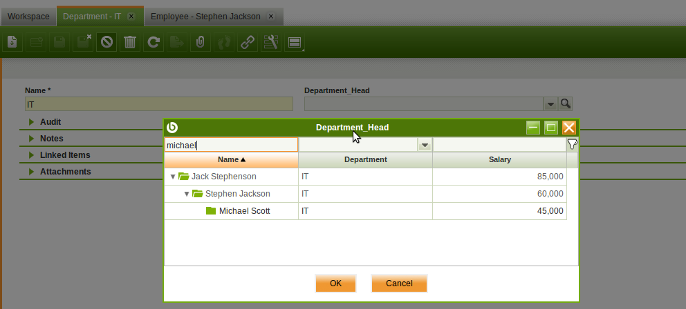 - The other field will be used as Display Field and shown in the drop down tree and popup tree.