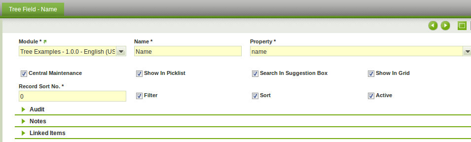 - Record Sort No: Sequence number of the field. It is used to establish the field order in the drop down tree and the popup tree.