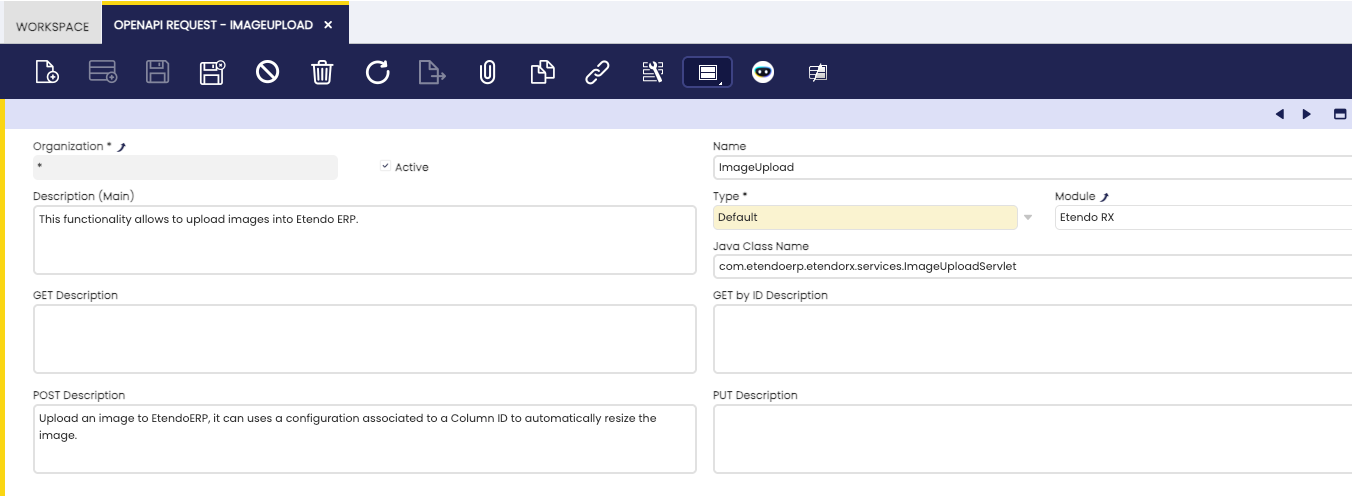 endpoint.setDescription("Upload an image to EtendoERP, it can use a configuration associated with a Column ID to automatically resize the image.");