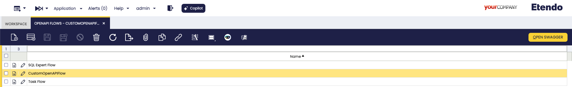 The new endpoint documentation should be visible at the Swagger UI. Execute the Open Swagger button to open the Swagger in a new tab.