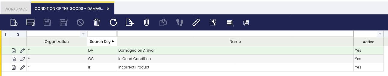 En esta ventana, el usuario define en qué estado proviene el producto del cliente. Estos valores se utilizan en la ventana Recibo devolución de material.