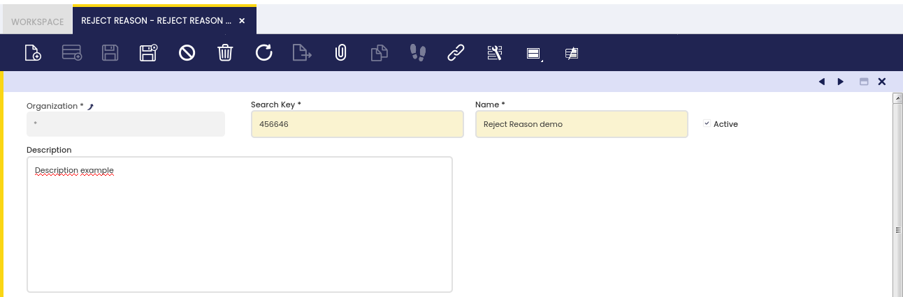 En esta ventana, el usuario define los motivos para rechazar presupuestos. Estos valores se utilizan en la ventana Presupuesto de ventas.