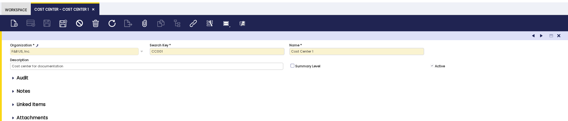 (*)to make the cost center available across all organizations in the system. - Search Key (required): A short, unique code to identify the cost center (e.g.,
