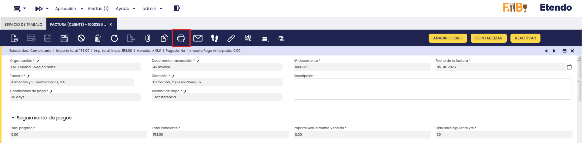 El módulo incluye múltiples restricciones en el flujo de facturación, requeridas por ley en Etendo. Tenga en cuenta esto al utilizar el mismo, y planifique sus procesos siguiendo los nuevos flujos.