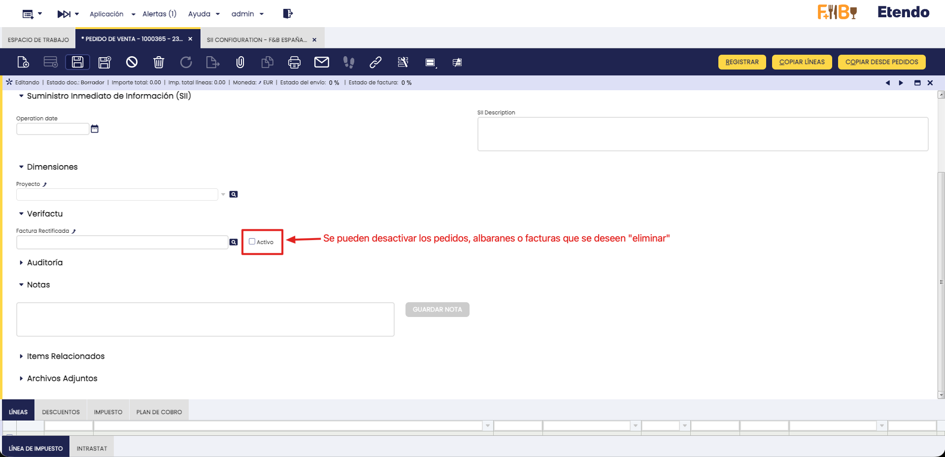 Borradores de Facturas, Pedidos y Albaranes
