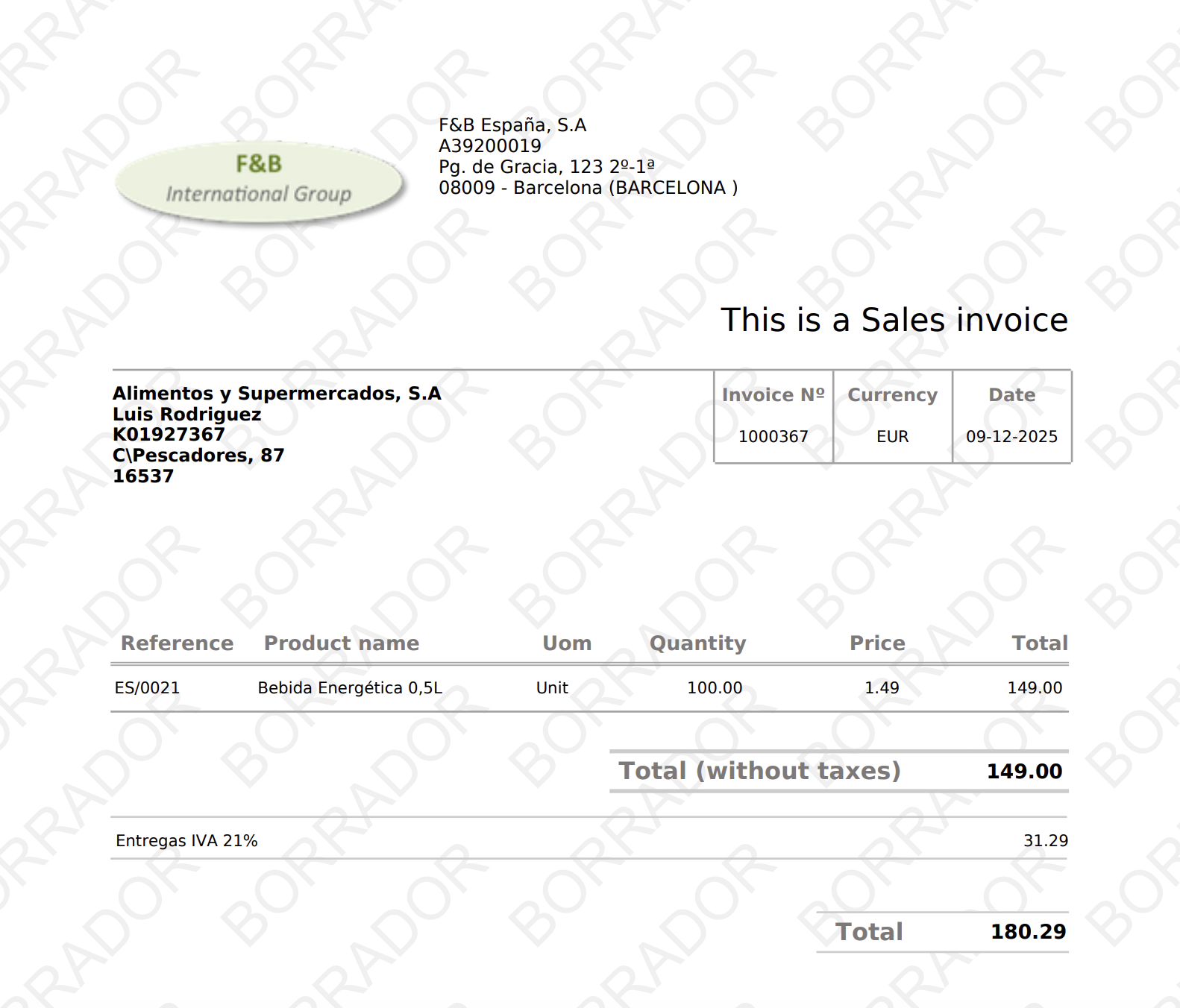Que la factura esté emitida. Si está en borrador, se mostrará esto con una marca de agua para que sea fácilmente diferenciable