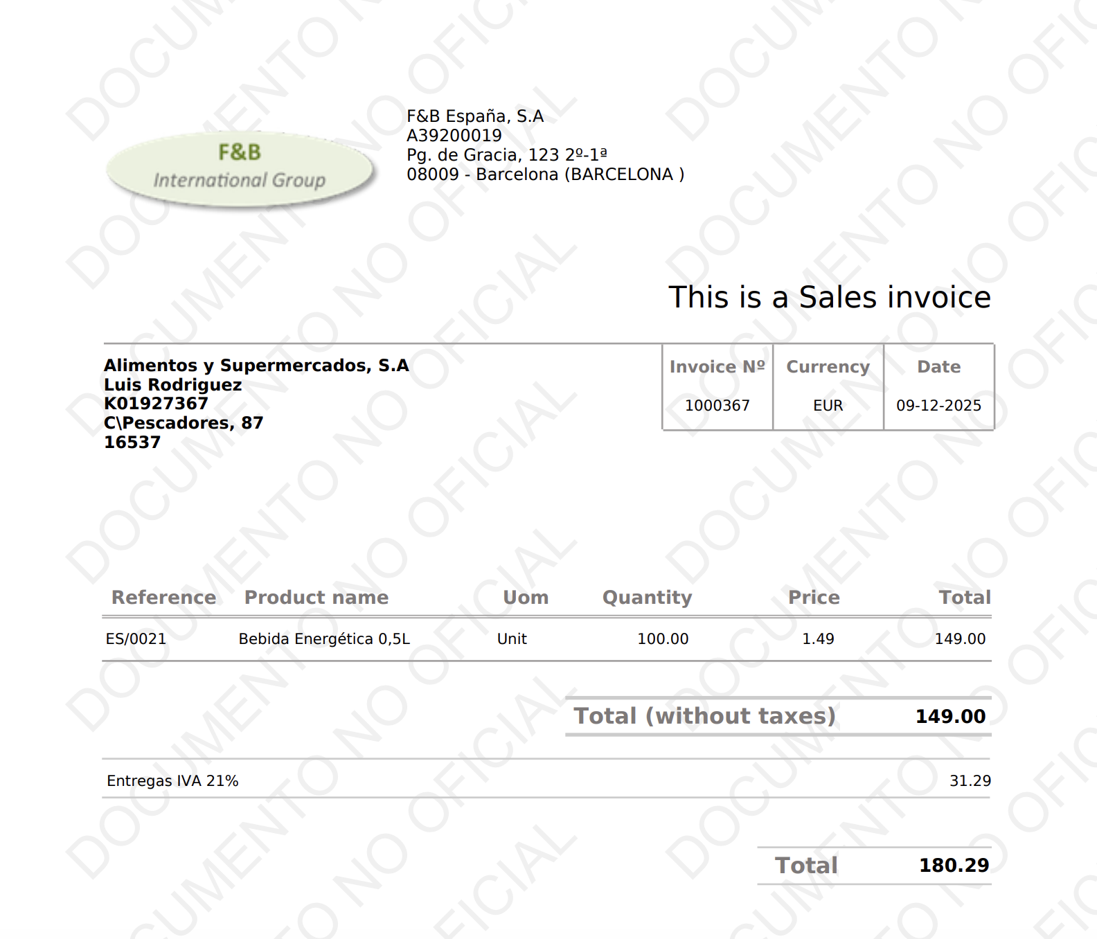 Aplica si al menos una de las partes tiene residencia fiscal en España (organización del documento o la del socio de negocio). Si ambas organizaciones son fuera de España, no interviene. Si no puede determinar el país, actúa de forma conservadora y aplica la validación.