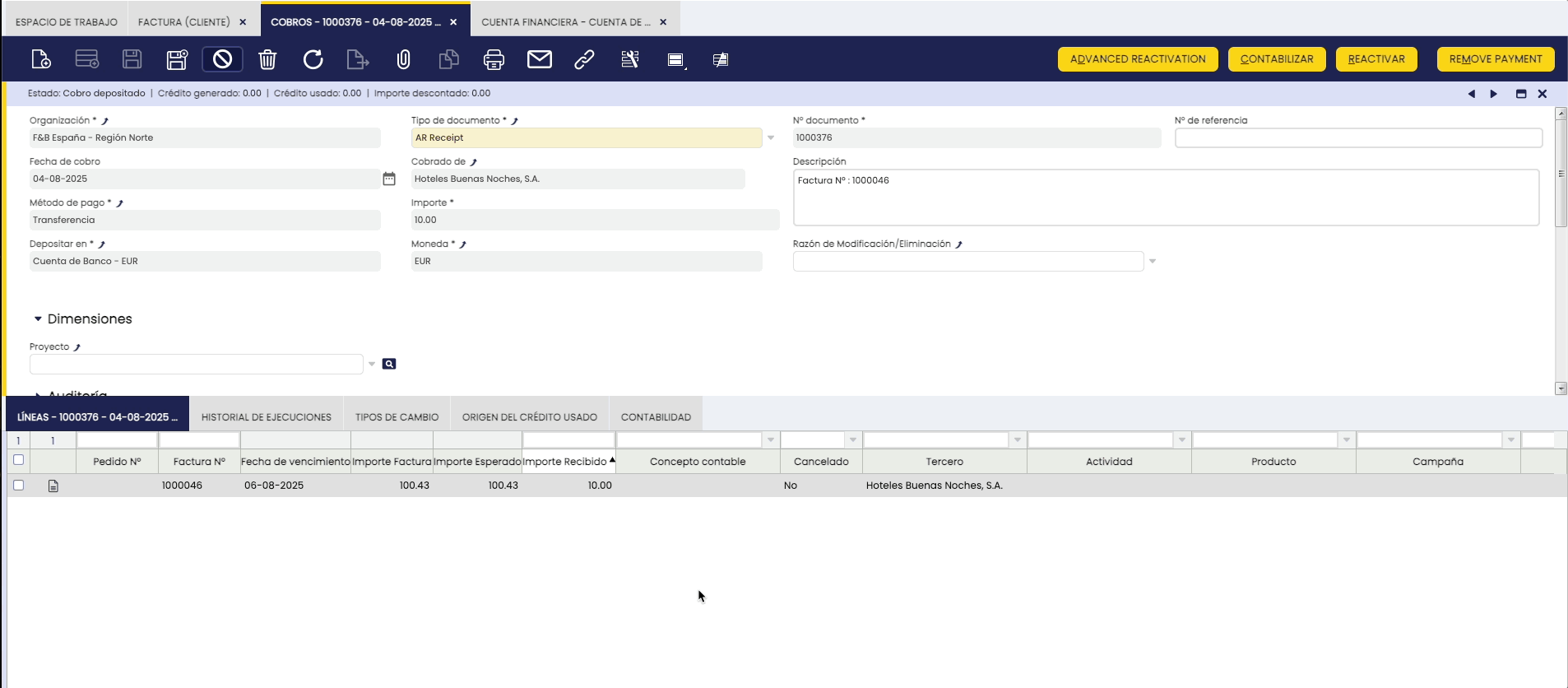 Reactivación y Descontabilización de Cobros, Asientos y/o transacciones Relacionadas
