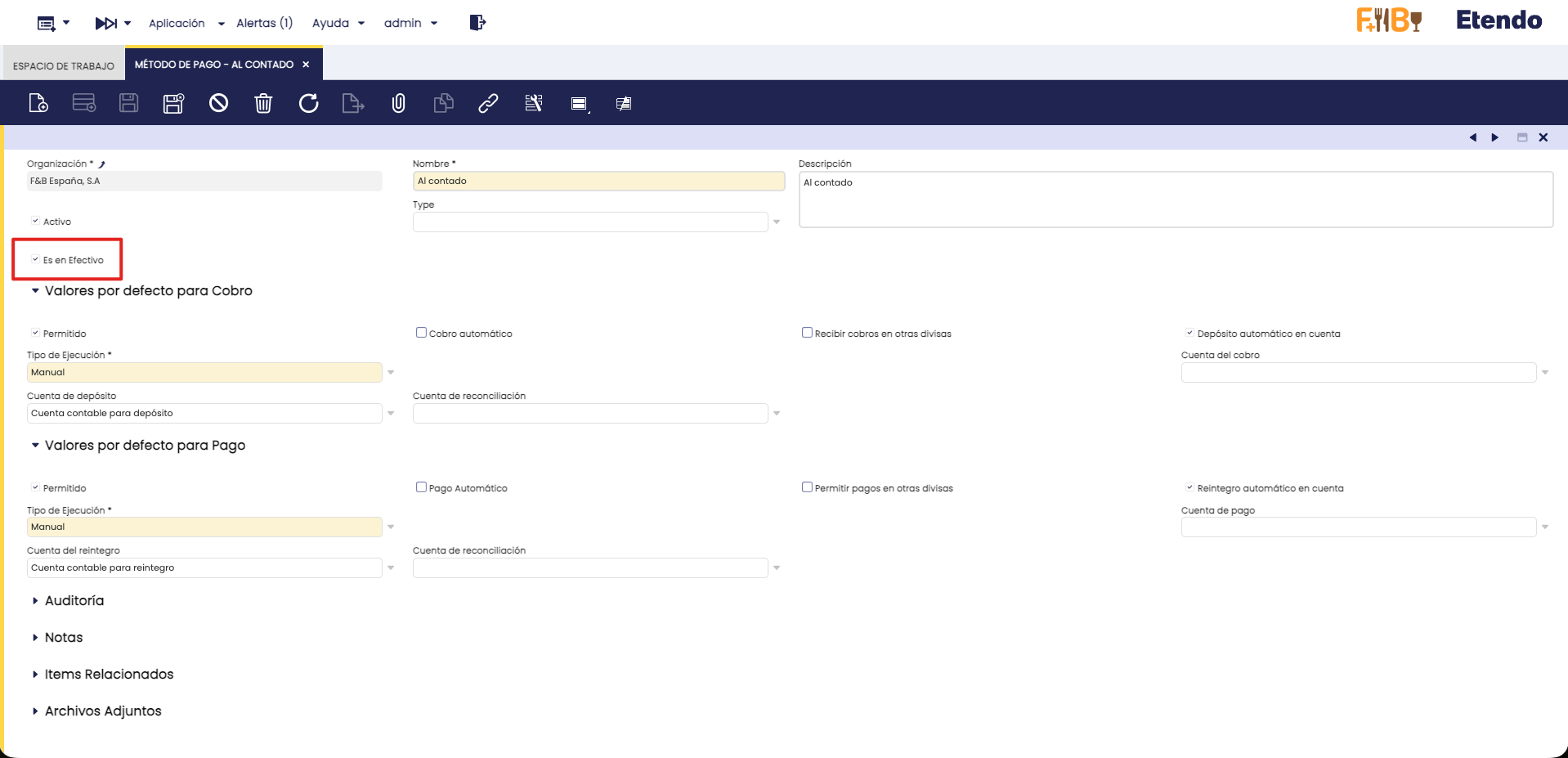 Esta restricción se activa sólo si el método de pago está marcado como “En Efectivo”. Este es un nuevo campo introducido en la ventana de ‘Método de Pago’.