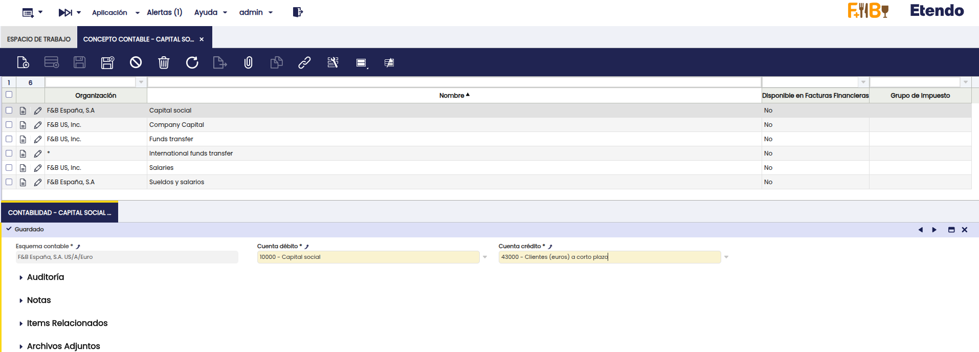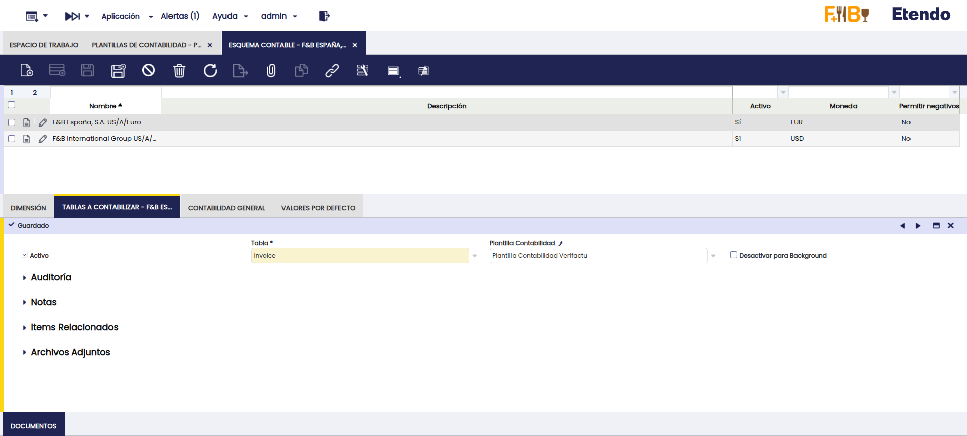 Aplicación > Gestión Financiera > Contabilidad > Configuración > Plantillas de Contabilidad