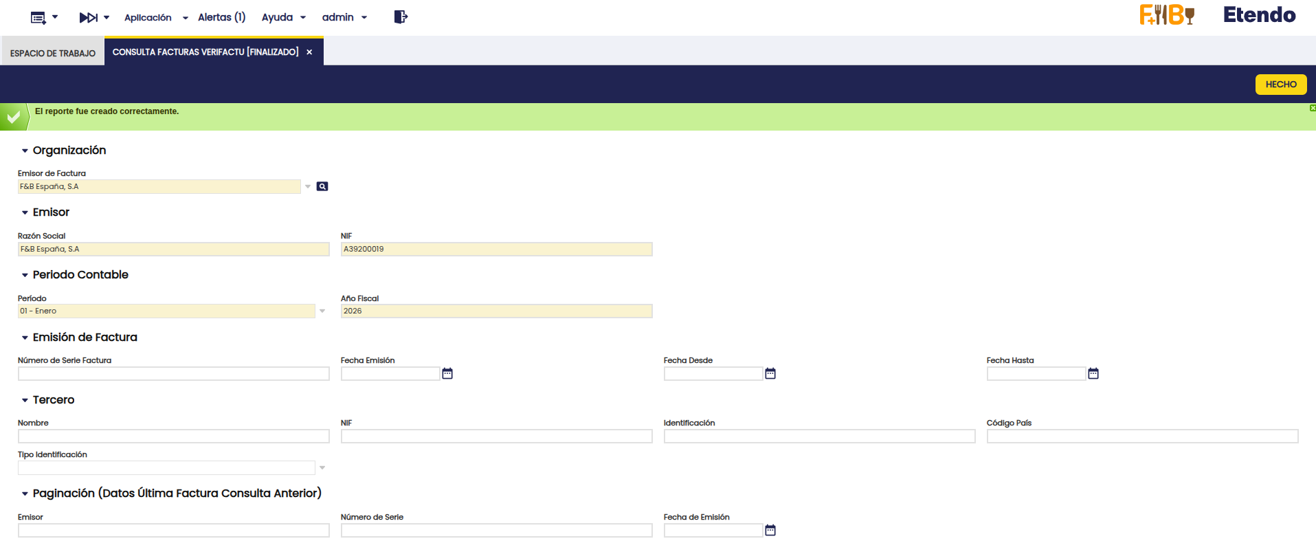 Este proceso permite obtener un informe detallado de las facturas enviadas a Verifactu, ofreciendo múltiples opciones de filtrado para facilitar la consulta: