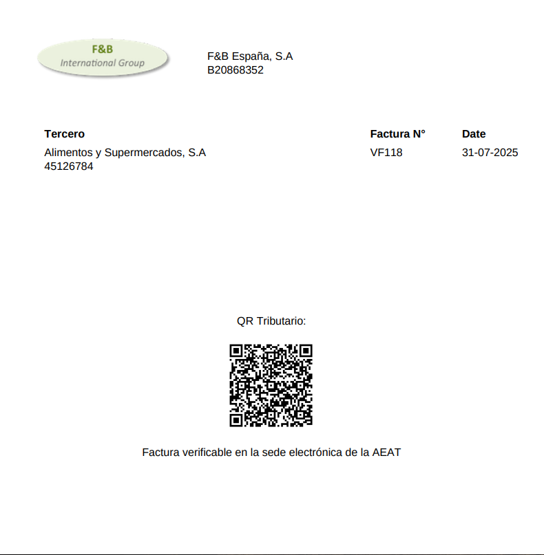 Al imprimir una factura, se incorpora un código QR diseñado para facilitar la verificación de su emisión y registro ante la Agencia Tributaria (AEAT).