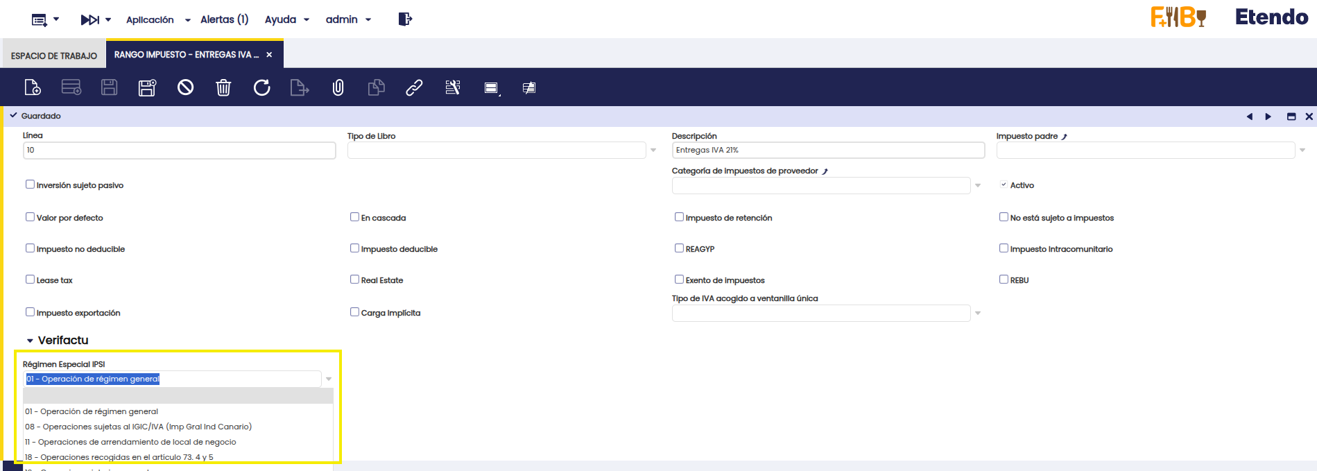 Para impuesto de aplicación IPSI: Régimen Especial IPSI