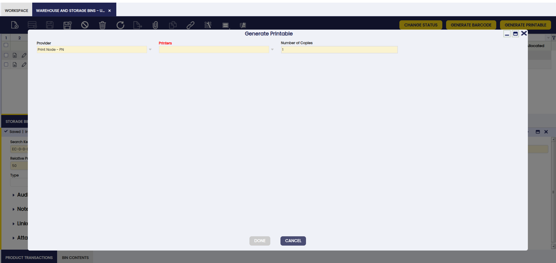 - Storage bin: (read-only) displays the current location of the selected product. It is automatically completed when the product is uploaded.