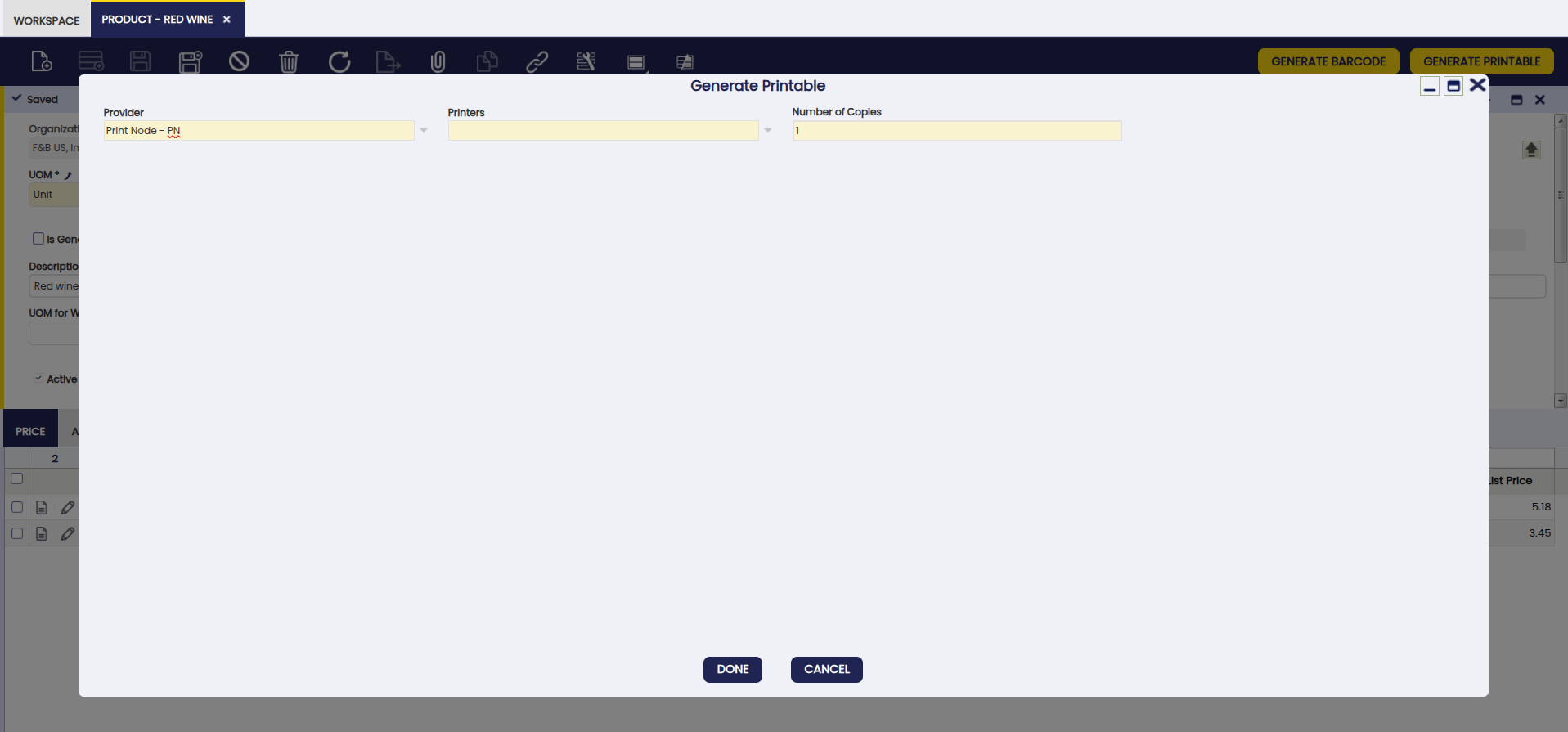 - UOM: (read-only) displays the unit of measure in which the product is managed. It is automatically completed when the product is uploaded.