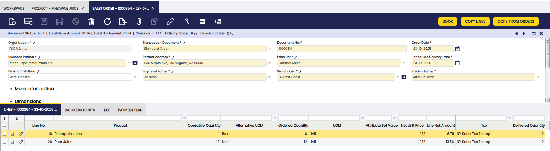 As a result, the sale is managed and executed in the defined alternative unit of measure, automatically transferring to subsequent logistics processes such as delivery, packaging, and other warehouse operations.
