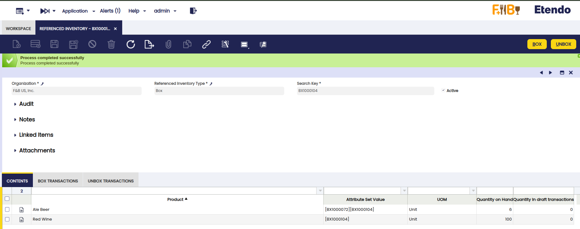 - The Unbox process applies the Storage Bin assigned to that grouping for the products it contains, replacing the original location.