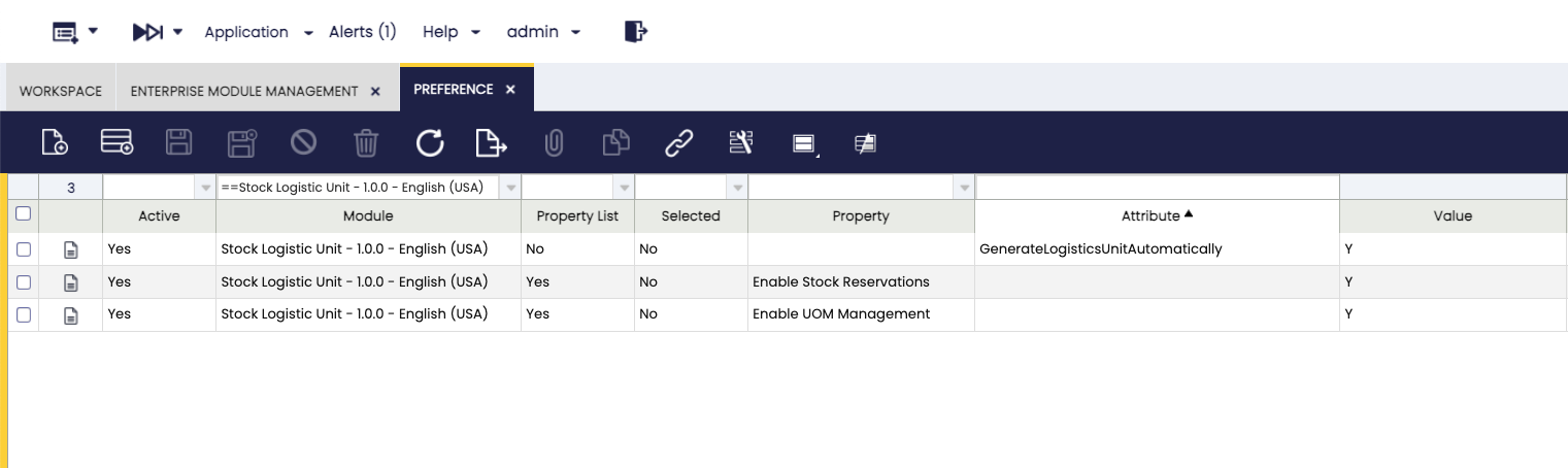 - Each AUOM should be linked to a referenced inventory type, through the Logistic Unit Type field, ensuring that stock creation in Referenced Inventory windows, complies with the defined logistics unit.